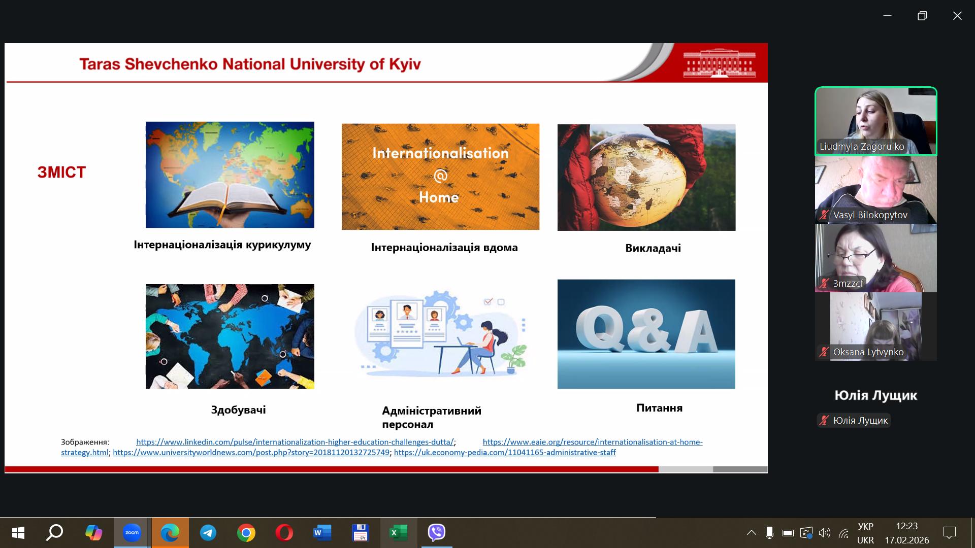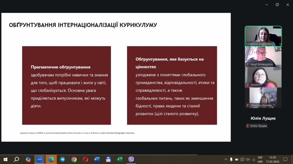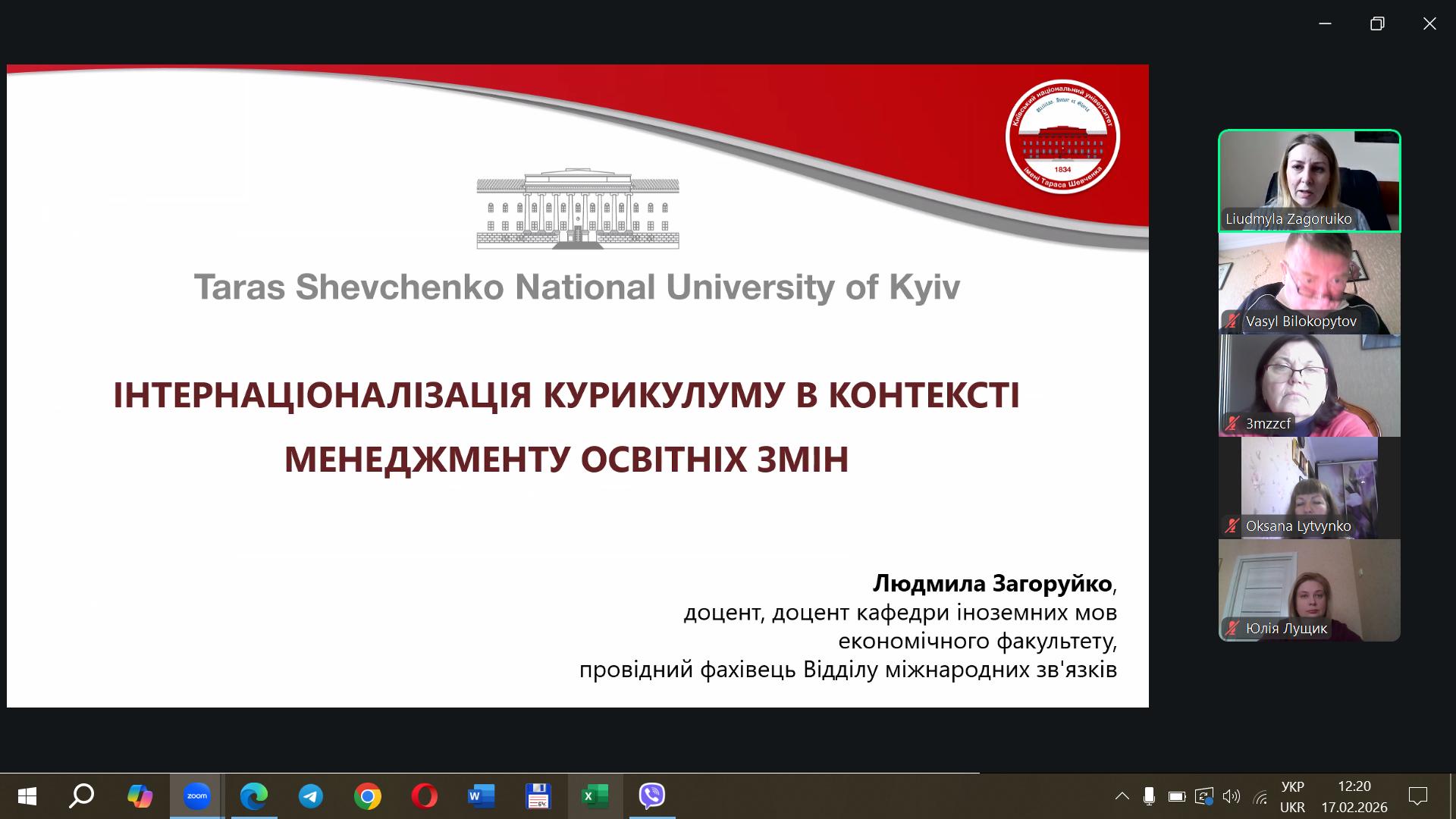 17 лютого 2026 на кафедрі іноземних мов відбулась гостьова лекція “Інтернаціоналізація курикулуму в контексті менеджменту освітніх змін”. Гість – Л. Загоруйко, доцент, доцент кафедри іноземних мов економічного факультету, провідний спеціаліст відділу міжнародних зв’язків КНУ ім. Т.Г.ШЕВЧЕНКА.