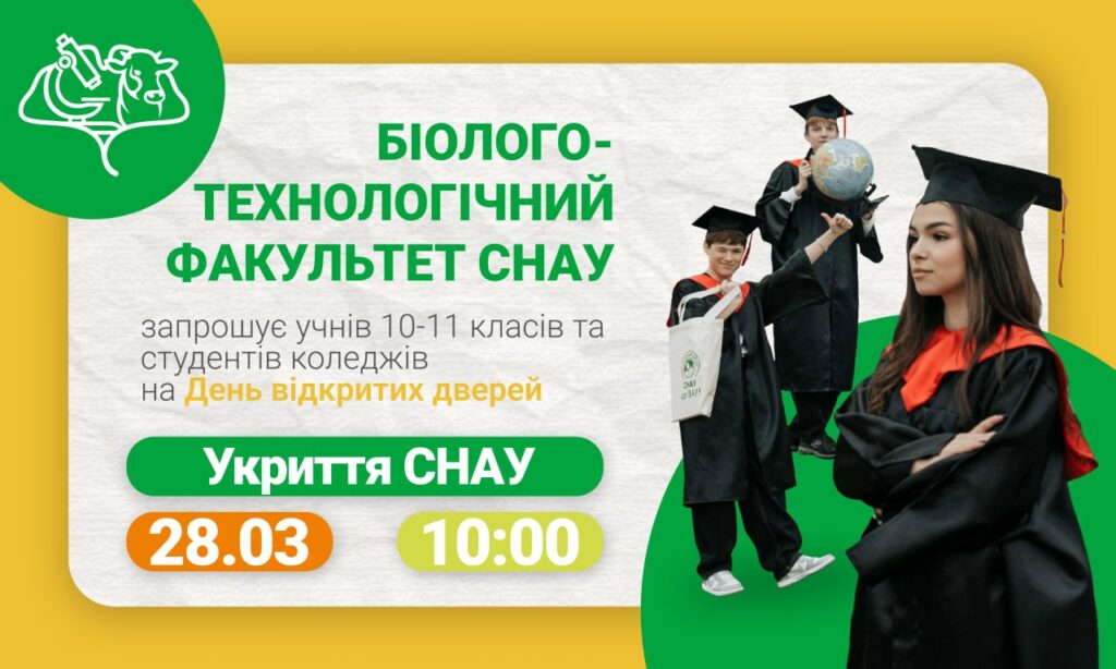 28 березня 2026 року на Біолого-технологічному факультеті Сумського національного аграрного університету відбудеться День відкритих дверей для майбутніх абітурієнтів.