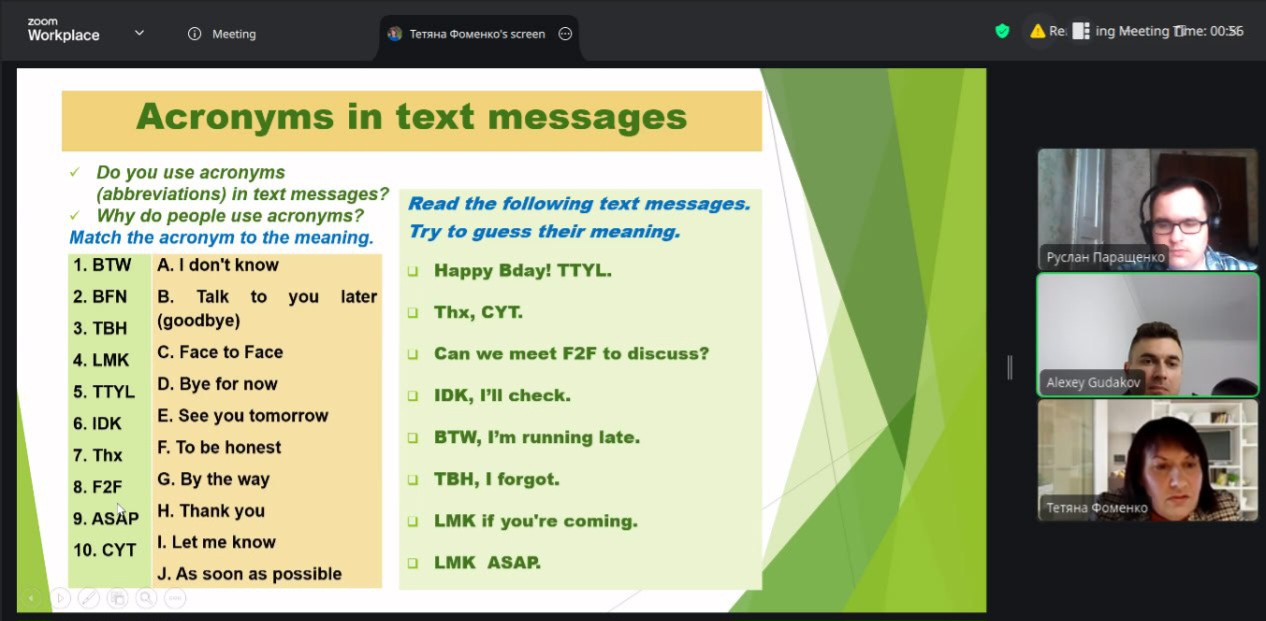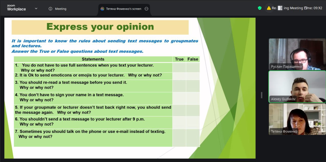 Модератором онлайн зустрічі була Тетяна Фоменко, канд.пед.наук, доцент кафедри іноземних мов.