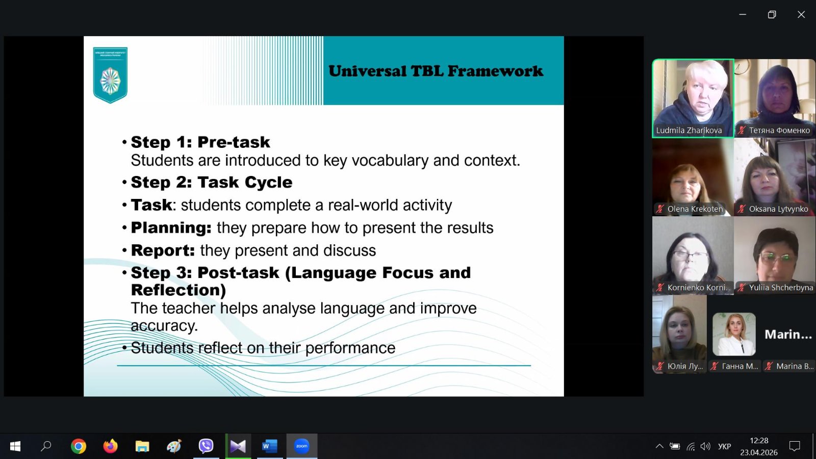 23.04.26р. о 12.15 у Сумському національному аграрному університеті відбулася гостьова лекція на тему: ІНТЕГРОВАНЕ НАВЧАННЯ АНГЛІЙСЬКОЇ МОВИ НА ОСНОВІ ПРАКТИКО ОРІЄНТОВАНИХ ЗАВДАНЬ (TASK-BASED LEARNING)
