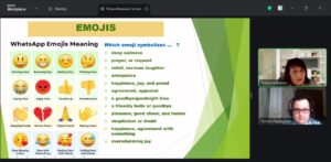 Студенти активно брали участь у дискусії, виконували низку цікавих завдань після перегляду відео про використання емодзі; обговорювали доречність використання емодзі у листуванні та діловій комунікації; ділились думками щодо правил листування із одногрупниками та викладачами, аналізували питання доречності користування гаджетами під час зустрічей, перебування за кермом тощо.