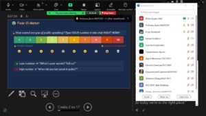 Під час інтерактивних завдань учасники виконували вправи на визначення поширених міфів і фактів про публічні виступи, аналізували поведінку спікерів на фотографіях, вчилися описувати емоційні стани під час виступу та опрацьовували корисні мовні конструкції для аргументації власної думки. Також переглянули й обговорили тематичне відео з порадами для впевненого виступу, зокрема важливість зорового контакту, посмішки, жестів і постави.
