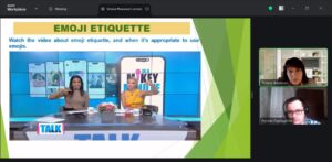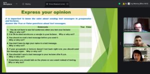 Студенти активно брали участь у дискусії, виконували низку цікавих завдань після перегляду відео про використання емодзі; обговорювали доречність використання емодзі у листуванні та діловій комунікації; ділились думками щодо правил листування із одногрупниками та викладачами, аналізували питання доречності користування гаджетами під час зустрічей, перебування за кермом тощо.