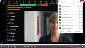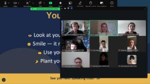 Під час інтерактивних завдань учасники виконували вправи на визначення поширених міфів і фактів про публічні виступи, аналізували поведінку спікерів на фотографіях, вчилися описувати емоційні стани під час виступу та опрацьовували корисні мовні конструкції для аргументації власної думки. Також переглянули й обговорили тематичне відео з порадами для впевненого виступу, зокрема важливість зорового контакту, посмішки, жестів і постави.
