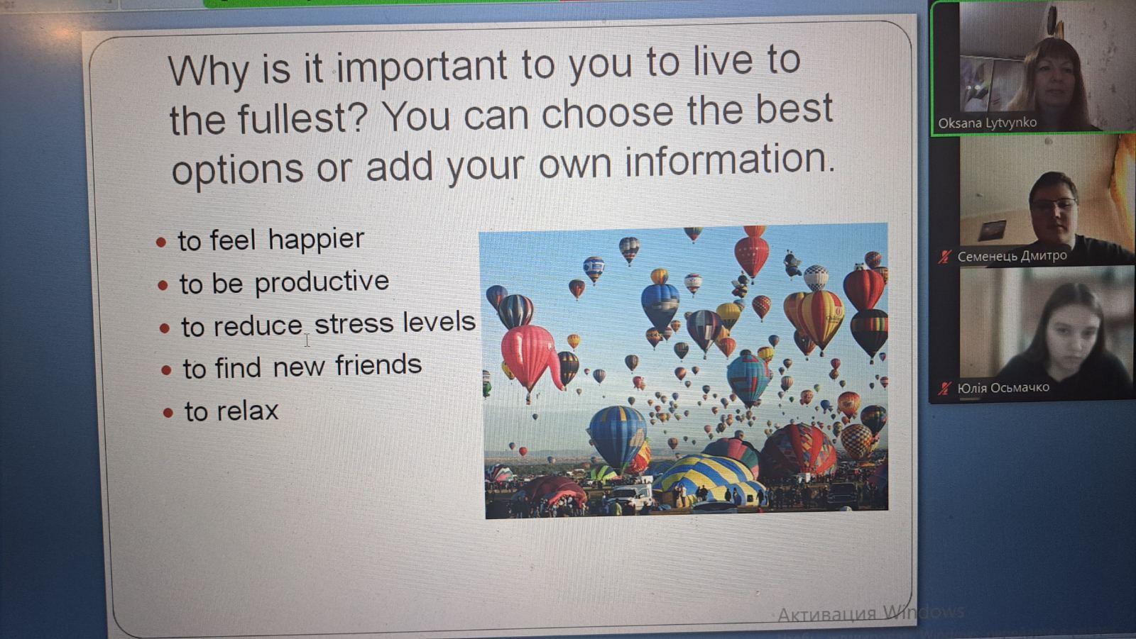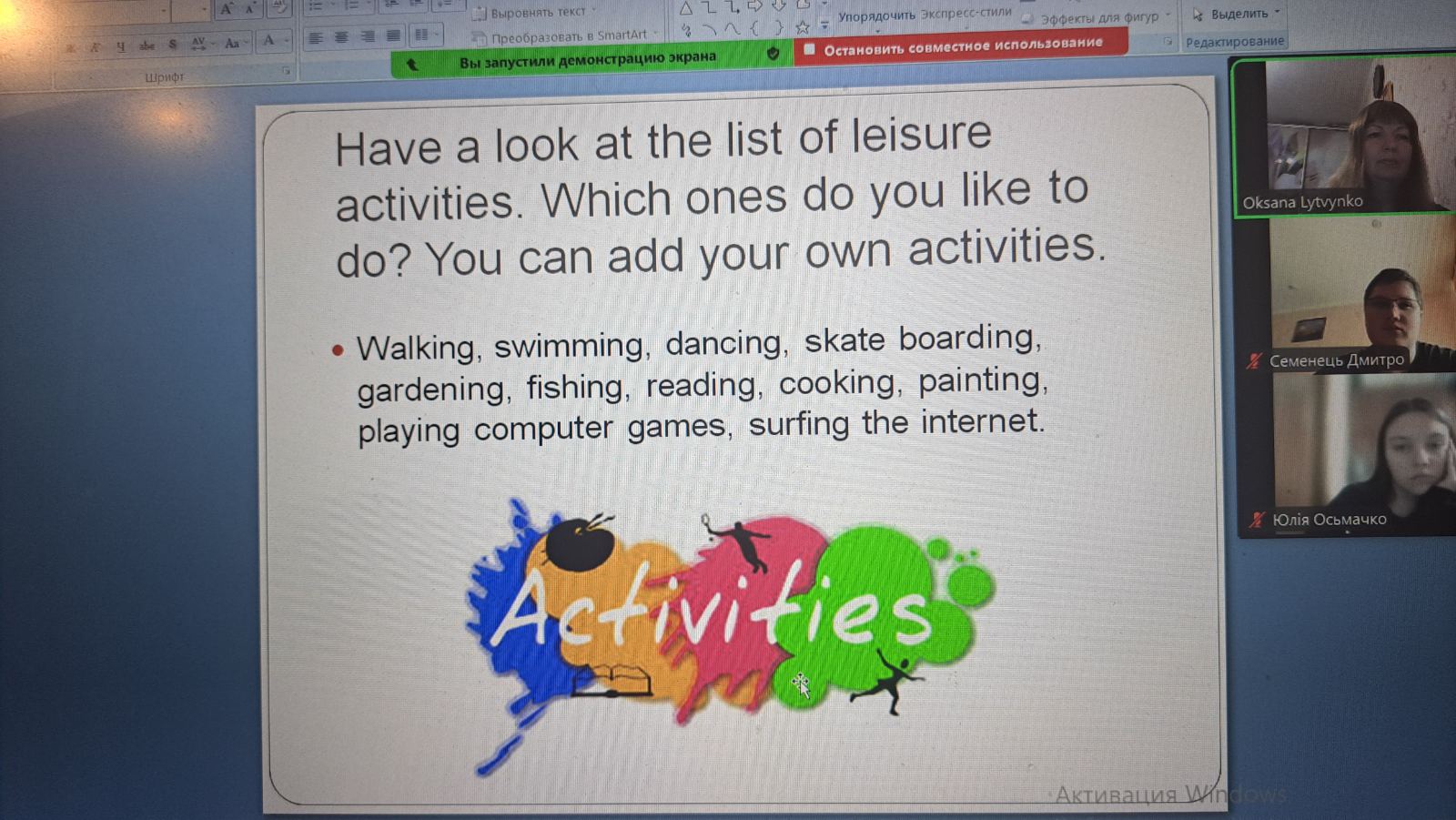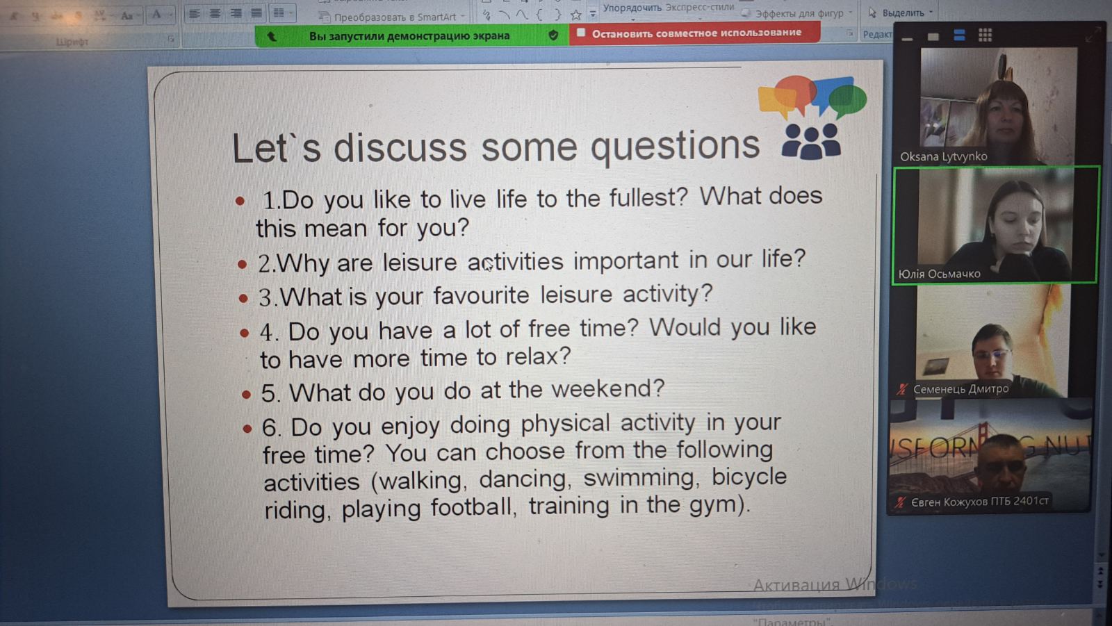 Студенти ділилися своїм досвідом проведення вільного часу з друзями, обмінювалися думками про те, що для них значать друзі і яку роль має відпочинок з друзями в їхньому житті.