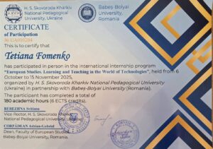 Старший викладач кафедри іноземних мов Крекотень Олена Валентинівна взяла участь у професійному лінгвістичному семінарі, який відбувся у м. Любліні, Польща, 27-28 березня 2025 року, за підтримки Французького Інституту в Україні при Посольстві Франції в Україні.