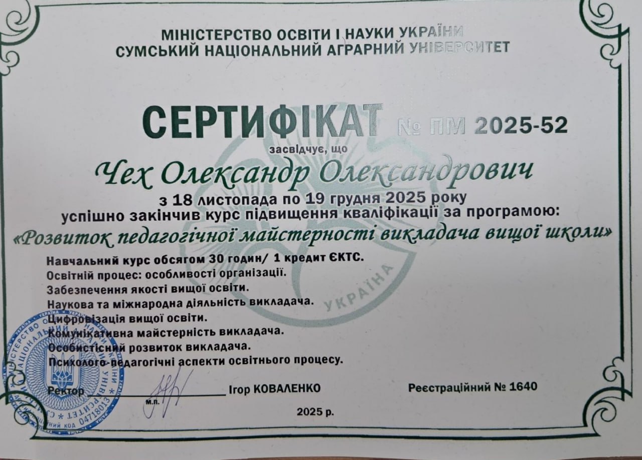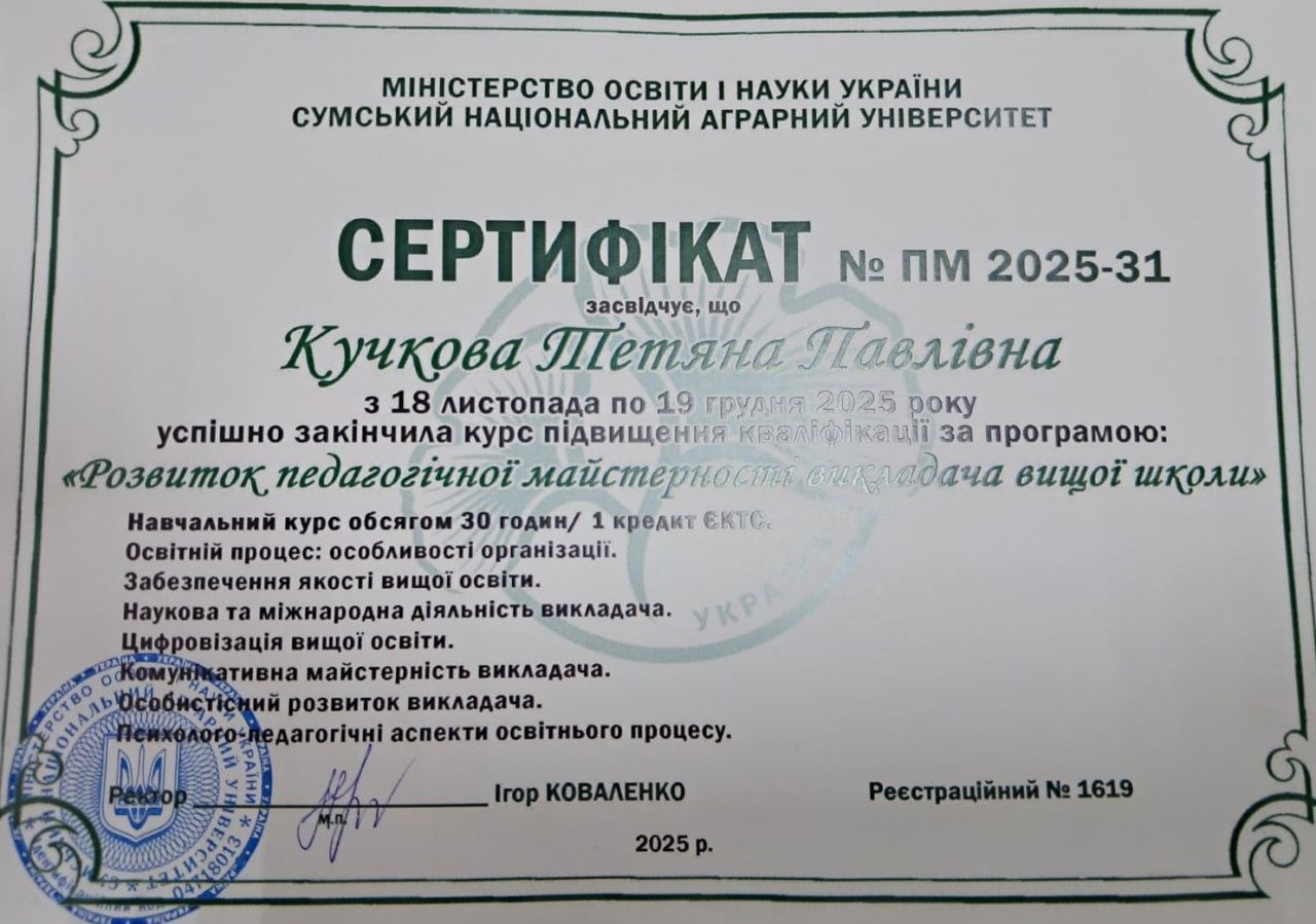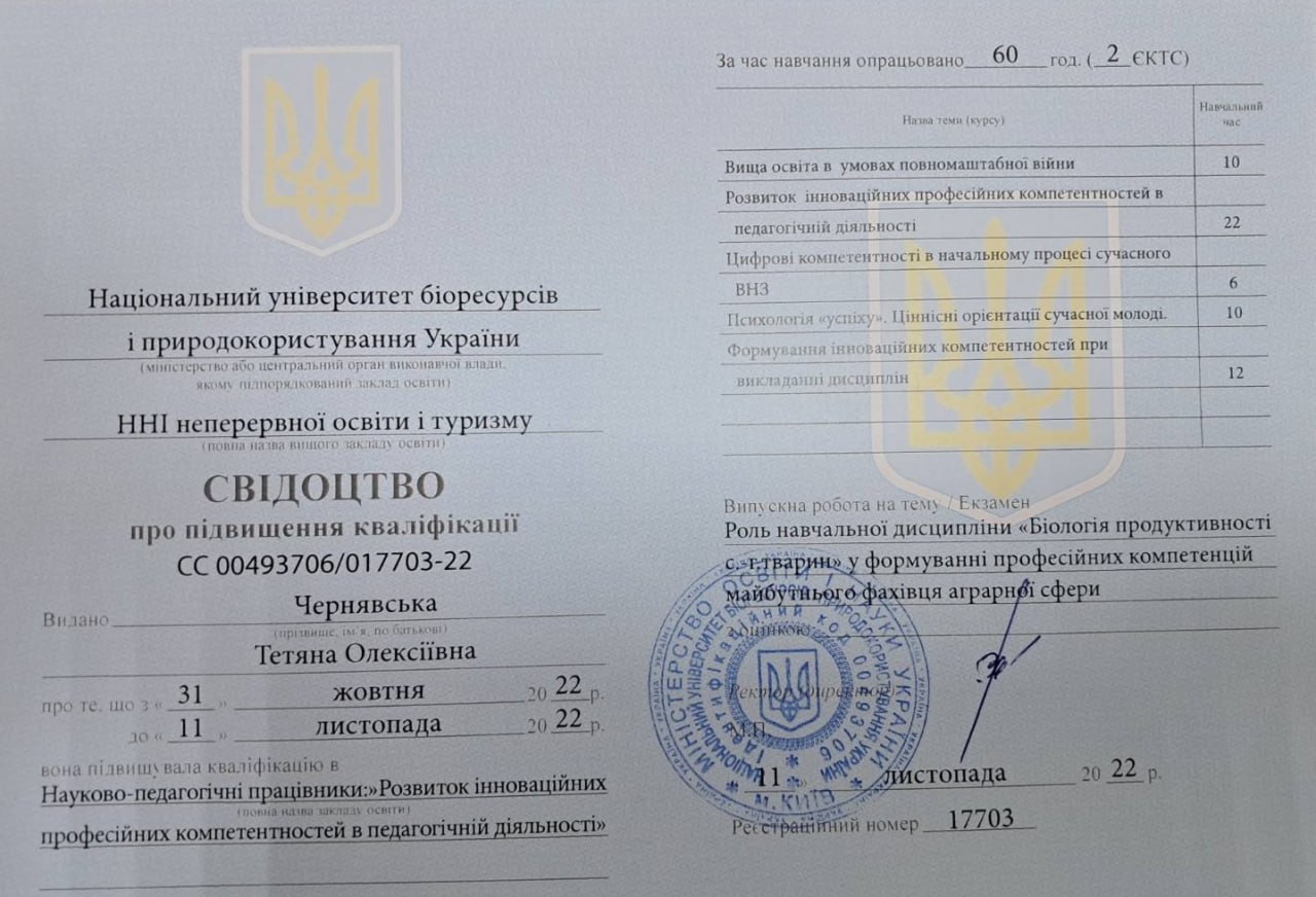 Головна › Кафедри › КАФЕДРА “ГЕНЕТИКИ, СЕЛЕКЦІЇ ТА БІОТЕХНОЛОГІЇ ТВАРИН” › Підвищення кваліфікації НПП кафедри