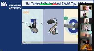 Під час засідання учасники обговорювали процес прийняття рішень, ділилися особистим досвідом та виконували низку інтерактивних завдань. Зокрема, розглядали фактори, що впливають на наші рішення, переглядали освітнє відео BBC Ideas, проходили опитування про стилі прийняття рішень та моделювали життєві ситуації у парах.