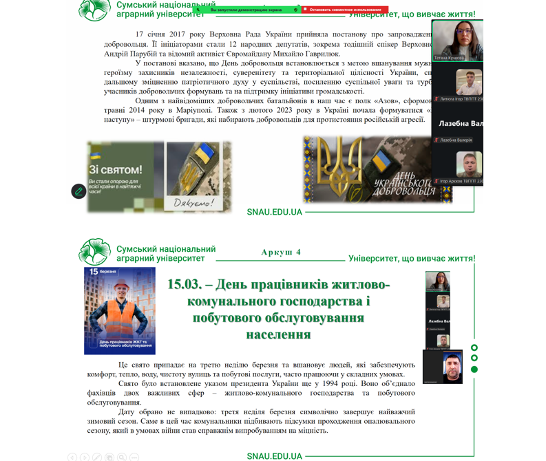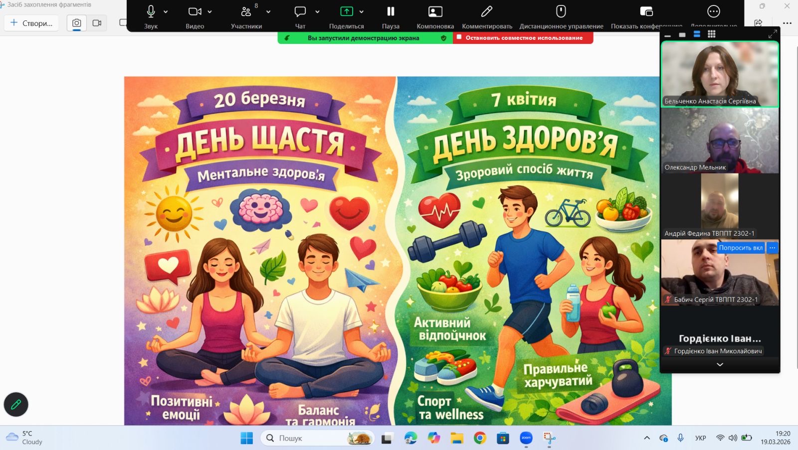 Упродовж березня кураторами академічних груп було проведено кураторські години, присвячені важливим та актуальним датам, зокрема за такими напрямами: