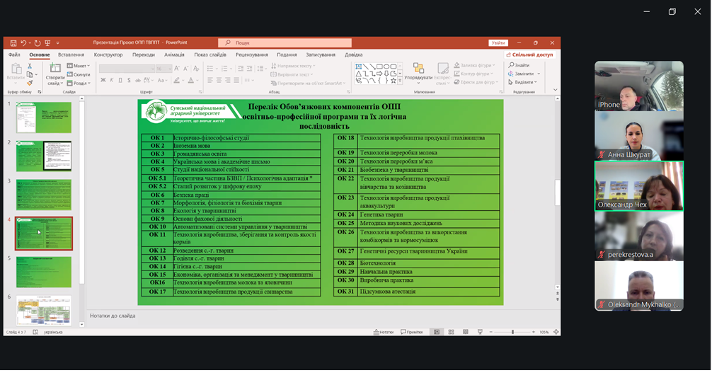 Обговорено зміст, структуру та очікувані результати навчання. Учасники висловили свої професійні зауваження та пропозиції щодо вдосконалення навчальних планів, щоб вони максимально відповідали потребам ринку праці та сучасним викликам аграрного сектору.