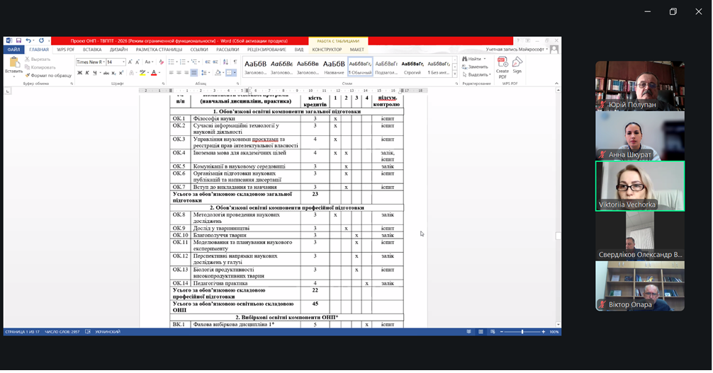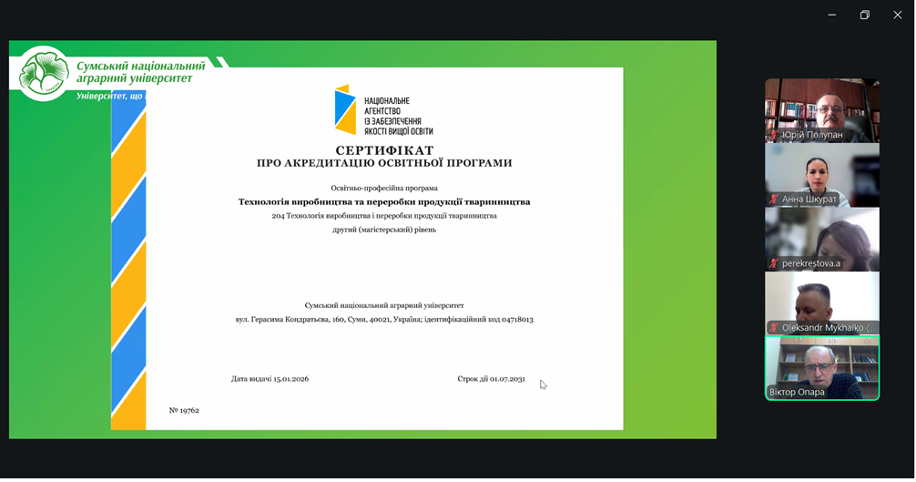 26 лютого 2026 року на Біолого-технологічному факультеті Сумського національного аграрного університету відбулося розширене засідання з обговорення проєктів освітніх програм за спеціальністю Н2 «Тваринництво» бакалаврського, магістерського та наукового (РhD) рівнів.