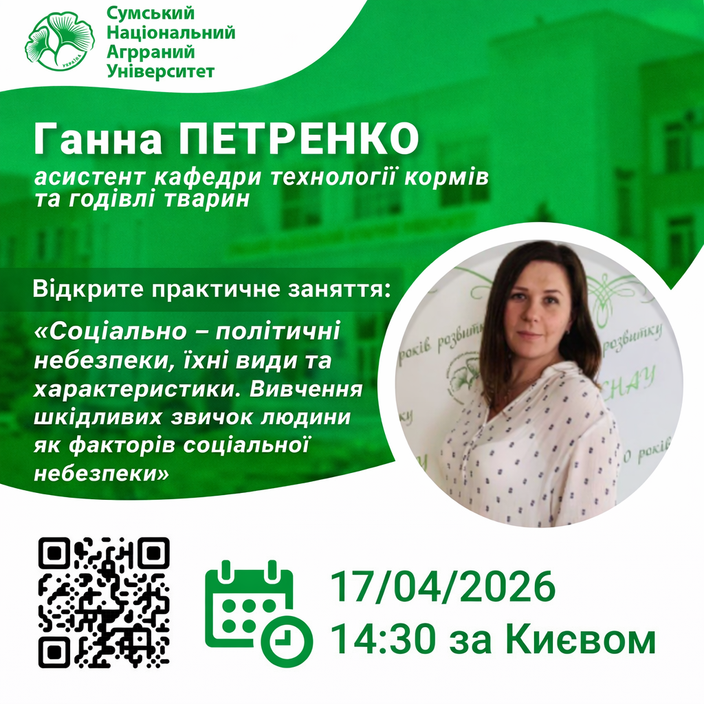 Викладач: Петренко Ганна Олександрівна, асистент кафедри технологій кормів та років тварин