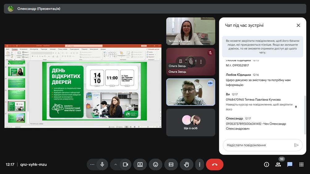 Під час заходу школярі дізналися про біолого-технологічний факультет, сучасні напрями розвитку тваринництва, можливості навчання на біолого-технологічному факультеті, перспективи професії та унікальні освітні програми, які пропонує Сумський національний аграрний університет. Викладачі також відповіли на запитання учнів та запросили на День відкритих дверей на факультеті.