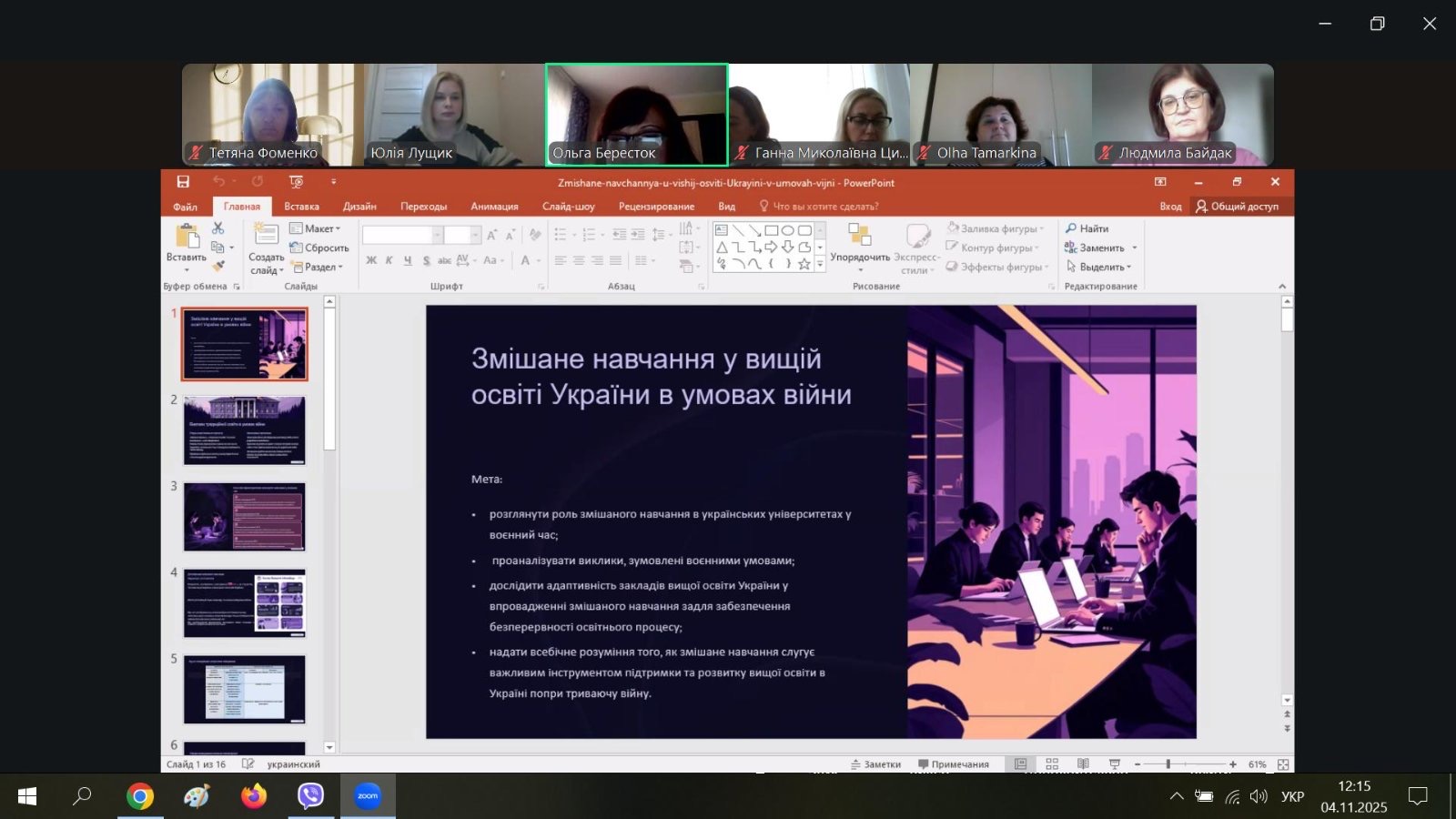Під час семінару учасникам було продемонстровано результати моніторингу низки досліджень, пов’язаних з викликами та перспективами змішаного навчання у закладах вищої освіти в умовах сучасних реалій.